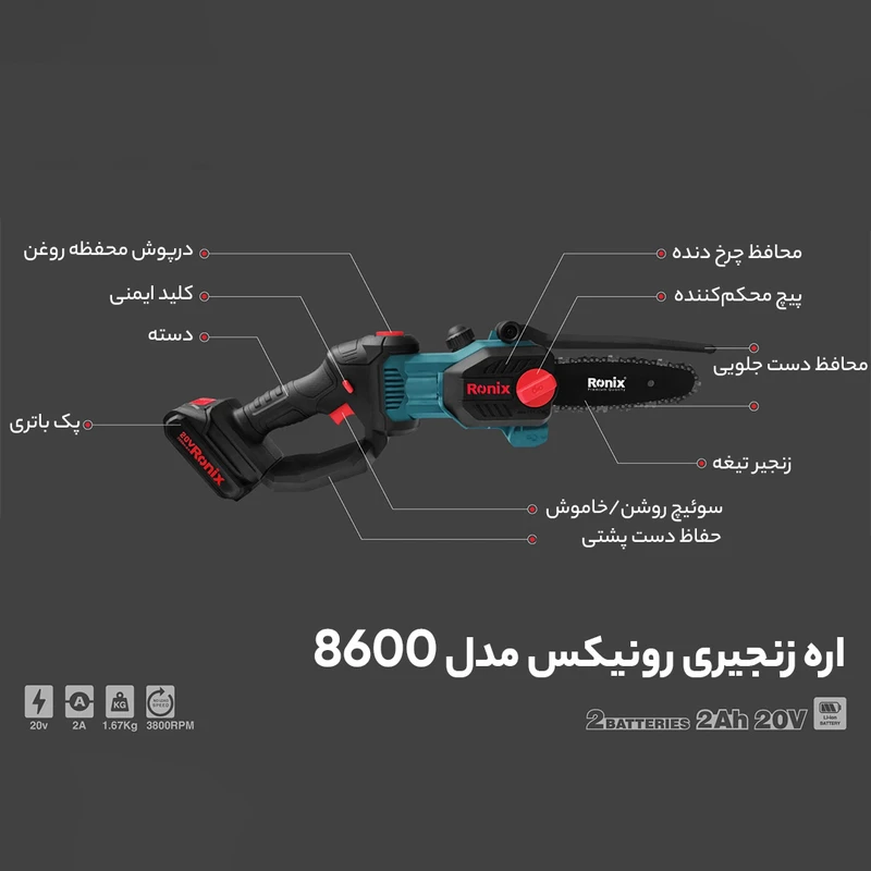 اره زنجیری شارژی رونیکس مدل 8600